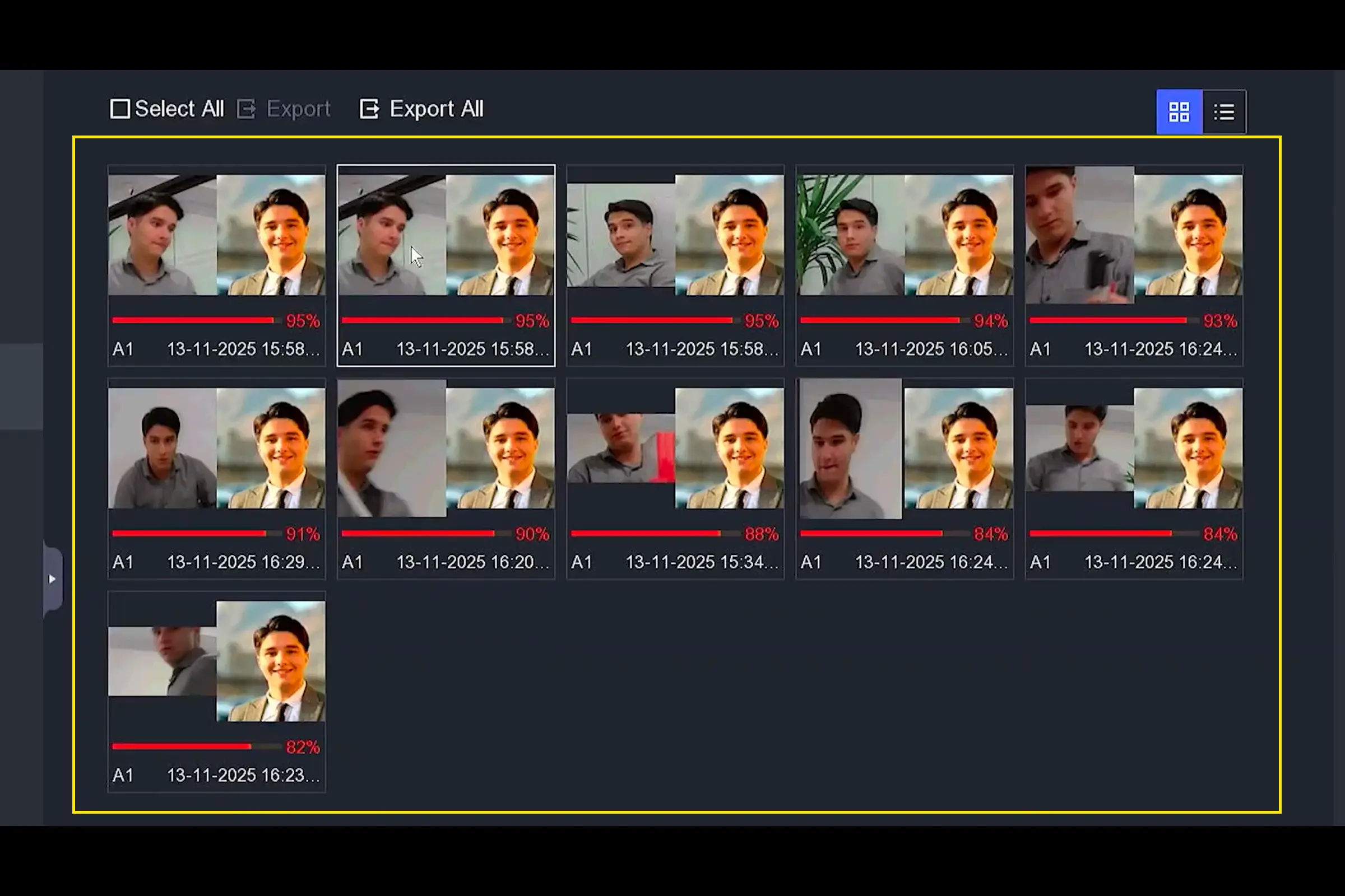 - بعد از چند لحظه، Event List نمایش داده میشود؛ این لیست شامل تمام لحظاتی است که فرد (یا چهرههای فیلترشده) مقابل دوربین ظاهر شدهاند.